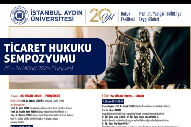 İstanbul Aydın Üniversitesi Hukuk Fakültesi tarafından Prof. Dr. Yadigar İZMİRLİ’ye Saygı Günleri kapsamında 25-26 Nisan 2024 tarihleri arasında İstanbul’da düzenlenen Ticaret Hukuku Sempozyumuna, Fakültemiz öğretim üyelerinden Dr. Öğr. Üyesi Pınar Uzun-Şenol, “Markanın Ayırt Edici Karakteri Değiştirilmeden Farklı Unsurlarla Kullanımı” başlıklı tebliği ile katılmıştır.