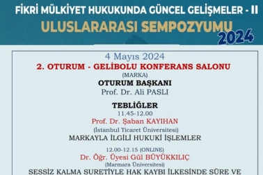 Balıkesir Üniversitesi Hukuk Fakültesi’nin ev sahipliğinde 3-4 Mayıs 2024 tarihleri arasında düzenlenen Fikri Mülkiyet Hukukunda Güncel Gelişmeler II Uluslararası Sempozyumu’na, Fakültemiz öğretim üyelerinden Dr. Öğr. Üyesi Pınar Uzun-Şenol, “Marka Kullanımına İstisna Teşkil Eden Haklı Sebep Kavramı” başlıklı tebliği ile katılmıştır.