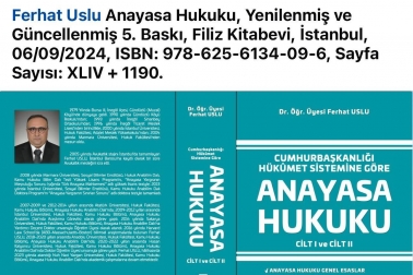 Fakültemiz Kamu Hukuku Bölümü, Anayasa Hukuku Anabilim Dalı Öğretim Üyesi, Dr. Öğr. Üyesi Ferhat USLU’nun ANAYASA HUKUKU adlı kitabının 5. Baskısı Filiz Kitabevi’den çıktı.